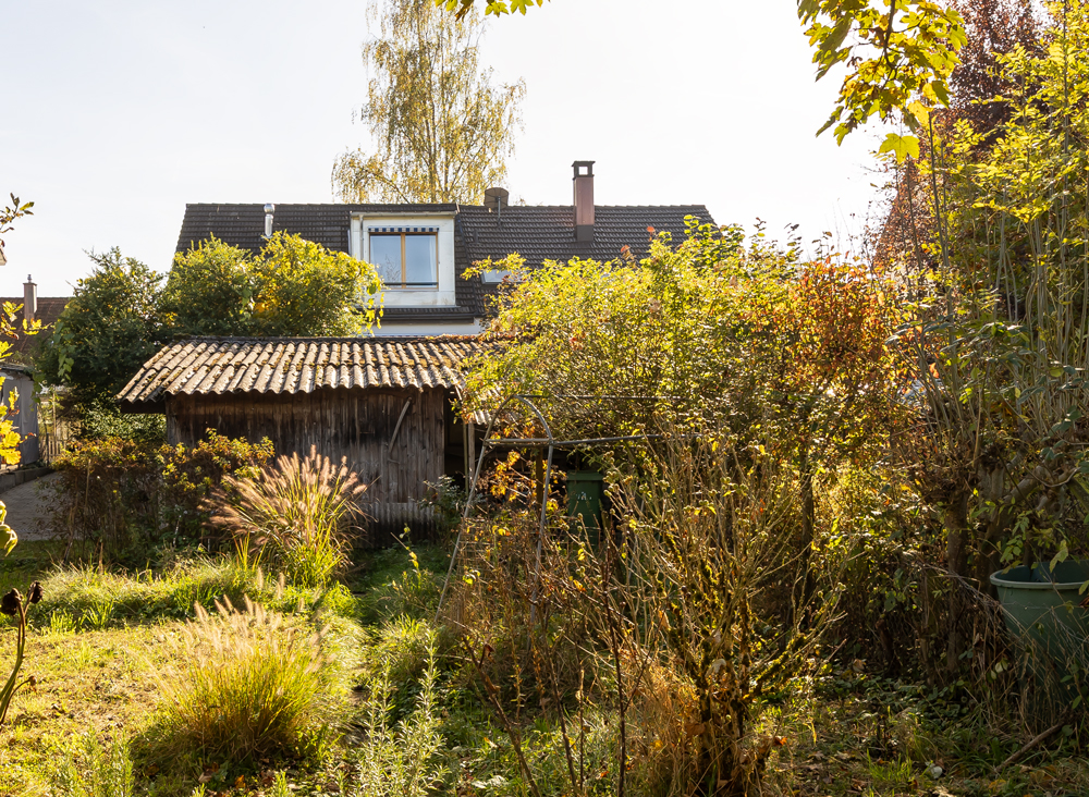 Umbau / Anbau 40er Jahre Haus Herrliberg Bauprojekt Herbst 2017 | Fotos nijo architekten Das freistehende Einfamlienhaus wurde in den 40er Jahren an der alten Dorfstrasse erbaut. Es ist ganz im Stil der Satteldach-40erJahre-Architektur gestaltet, einigermassen grosszügig proportioniert, aber es fehlt der Spass an der Sache. Man wohnt, schläft, kocht und badet in einzelnen Zimmern, ein Gang verbindet diese Zimmer. Es fehlt das gesamtheitliche Raumgefühl, sowohl innerhalb des Hauses als auch vom Haus zum Garten hin. Die Bauherrschaft wünscht sich ein über die Geschosse verbindendes, kommunikatives Raumgefühl und eine echte Einbindung des Wohnraumes in den Garten. Die Frage ob Abriss/Neubau oder Umbau/Erweiterung haben wir mit einem Variantenstudium eingehend geprüft mit dem Resultat, dass eine der Umbau-Varianten ein sehr spannendes Raumkonzept ermöglicht hat und sich im Vergleich zu einem Neubau überhaupt nicht verstecken musste, im Gegenteil, ein Neubau würde bedeutend mehr kosten und könnte trotzdem kein wesentlich anderes oder besseres Raumkonzept liefern. Die Umbauvariante erweitert das Haus an der südlichen Traufseite mit einem überhohen Raum. Die Bodenplatte der Erweiterung liegt drei Stufen tiefer als das bestehende Erdgeschoss, damit der Raum noch mehr an Höhe gewinnt und der ebenerdige Gartenzugang auf der Südwestseite möglich wird. Die Küche steht auf der bestehenden Erdgeschossplatte seitlich zum grossen neuen Wohnraum. Die Dachlasten werden über die offen gezeigte Holzkonstruktion abgeleitet. Der rückwärtige Bereich des bestehenden Erdgeschosses wird mit Rücksicht auf die bestehnde Tragstruktur neu organisiert: Ein neuer Kern mit Bad und Einbauschränken steht im Zentrum, man kann links und rechts um den Kern herum in die Küche und den Wohnraum gelangen. Im Bereich der bestehenden Treppe entsteht eine Garderobenzone und dahinter ein halboffenes Büro oder Gästezimmer. Die bauliche Loslösung der neuen Einbauten von der Fassade ermöglicht, die bestehenden Fenster unverändert stehen zu lassen. Im Dachgeschoss werden die bestehenden Zimmer und das Bad belassen, neu öffnen wir den Dachraum mit einer kleine Galerie mit Arbeitsplatz, von welchem aus man mit der Küche und dem Wohnraum in Kontakt treten kann. Der Anbau wird mit dem bestehenden Haus verschmelzen, man wird nicht mehr so genau erkennen können, was alt und was neu ist. Der Anbau wird komplett als Holzbau ausgeführt werden, die Fenster stehen auf einer 60cm hohen Brüstung und werden mit rund 300cm Höhe ein imposantes Raumgefühl vermitteln und viel Licht und Natur ins Haus herein holen. Der Garten wird neu gestaltet, das Terrain wird sanft dem Anbau angepasst. Es gibt viele neue Büsche und Sträucher, einen Gemüsegarten und einen neuen Kiesplatz für den Gartentisch. Die Gartengestaltung übernimmt die selbe Denkweise wie die Hauserweiterung: Ein verbindendes, gesamtheitliches Raumgefühl.